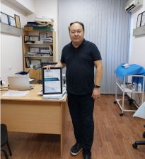 - в 2010 году первым в Казахстане внедрил и применяет при лечении варикозного расширения вен нижних конечностей процедуру радиочастотной облитерации (абляции) магистральных вен ClosureFast™ c использованием электродов-катетеров нового поколения ClosureFast™ на аппарате RFG 2 производства корпорации Covidien (США);