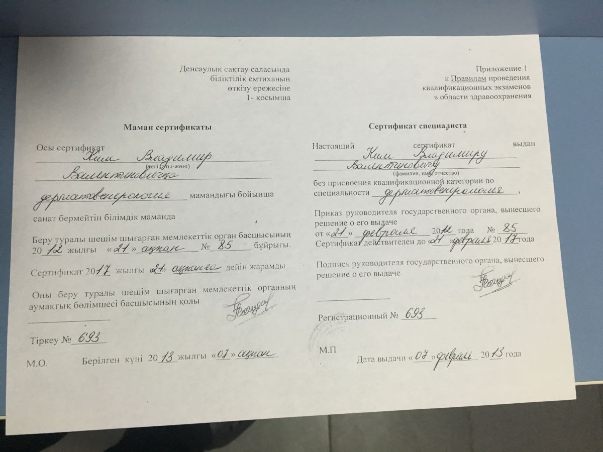 - 2007-2009 г. – специализация по дерматовенерологии.