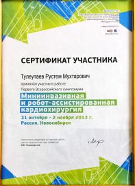 - 2013 ж. – минималды инвазивті және робот-ассисттелген кардиохирургия бойынша тренинг-курс (Новосибирск, РФ);